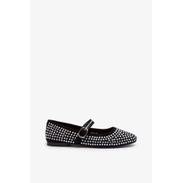 Ekologické semišové baleríny zdobené černými kamínky Tinara