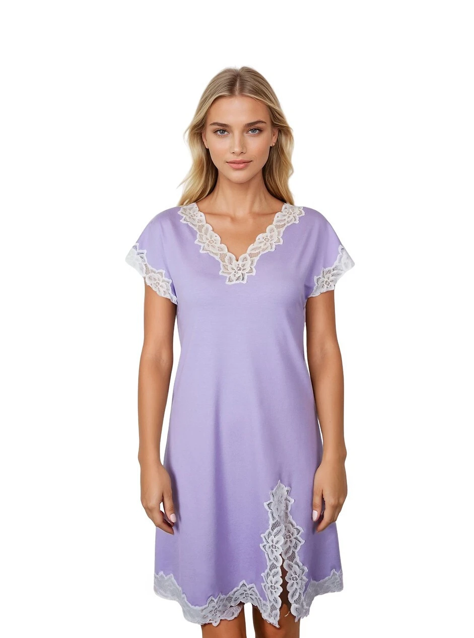 - výstřih, rukávy a rozparek z krajky s květinovým vzorem