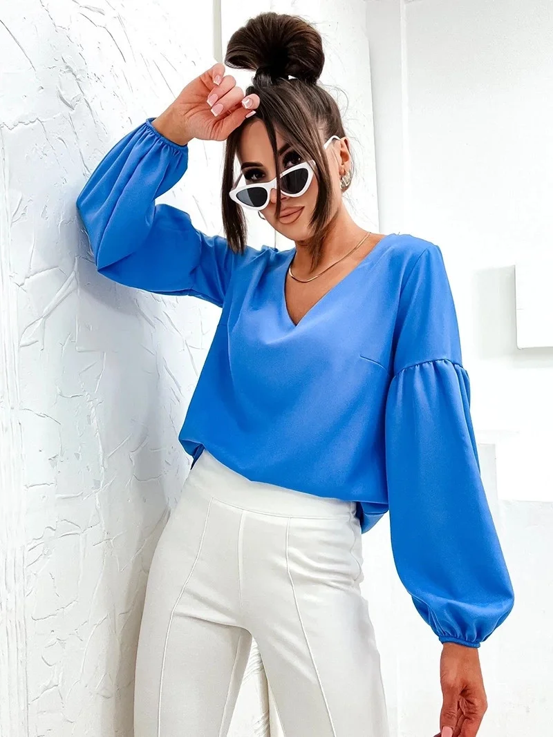 Světle modrá elegantní dámská halenka s ozdobnými rukávy (698)