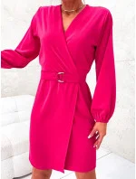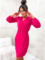 Elegantní přeložené obálkové šaty v malinové barvě (8251)