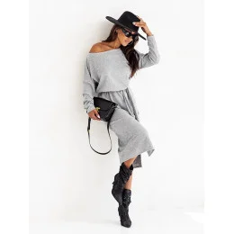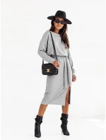 Elegantní šedé dámské midi šaty s páskem (82137)