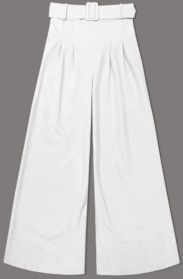 Elegantní bílé dámské kalhoty s opaskem (18727)