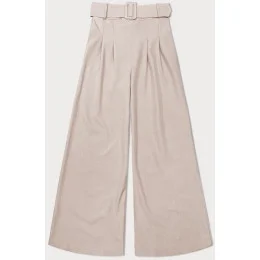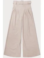 Světle béžové elegantní dámské kalhoty s opaskem (18727)