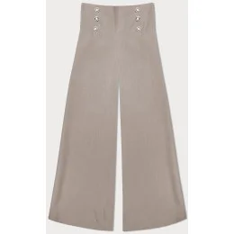 Tmavě béžové elegantní široké dámské kalhoty (33575)