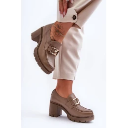 Eleganční polobotky na sloupku s ozdobou tmavě hnědou Harmell
