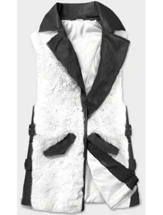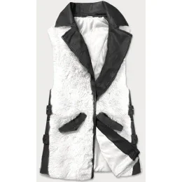 Elegantní černo-bílá vesta z ekokůže a kožešiny (BR9592-2601)