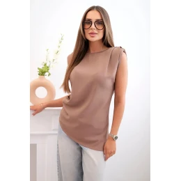 Elegantní dámská halenka s volánky a asymetrickým střihem velbloud