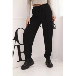 Elegantní dámské kalhoty s vysokým pasem a vázáním v pase černé