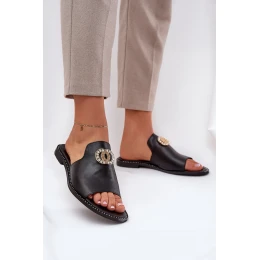 Elegantní Dámské Kožené Pantofle S Dekorací Zazoo 3008 Černé