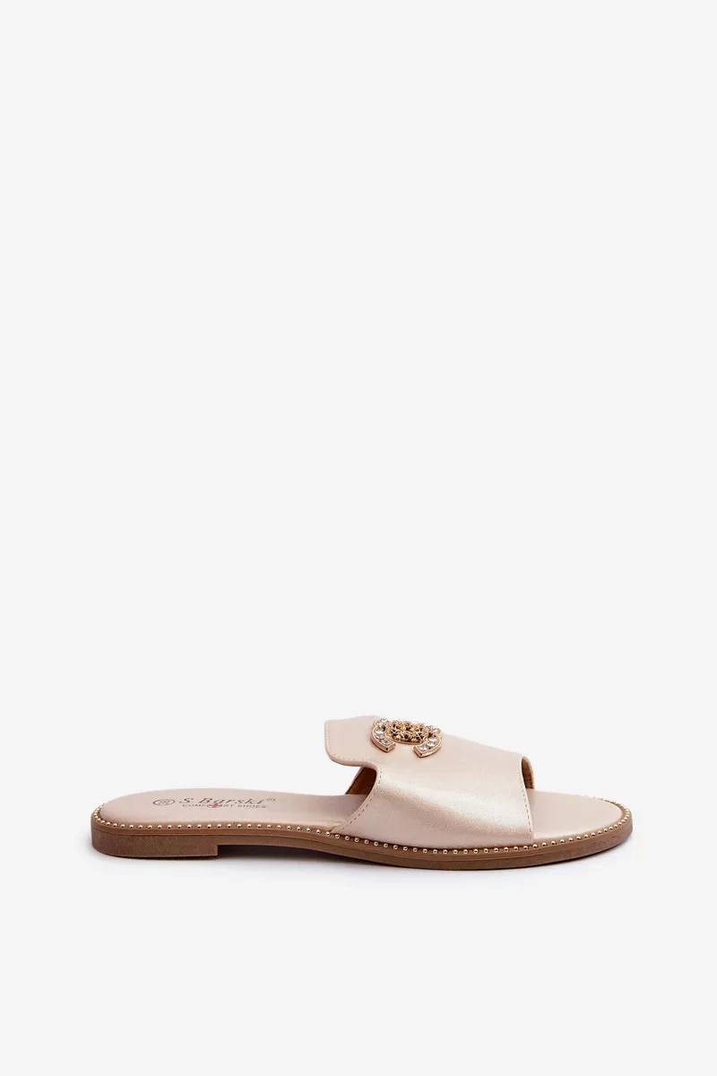 Elegantní dámské lesklé pantofle s ozdobou.Barski Gold