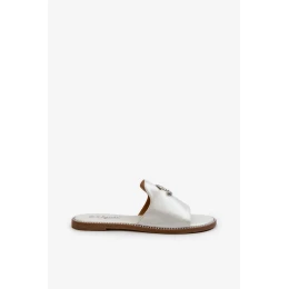 Elegantní dámské lesklé pantofle s ozdobou S.Barski Stříbrná