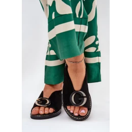 Elegantní Dámské Sandály S Zlatou Ozdobou Na Plochém Podpatku Černé S.Barski KV27-053
