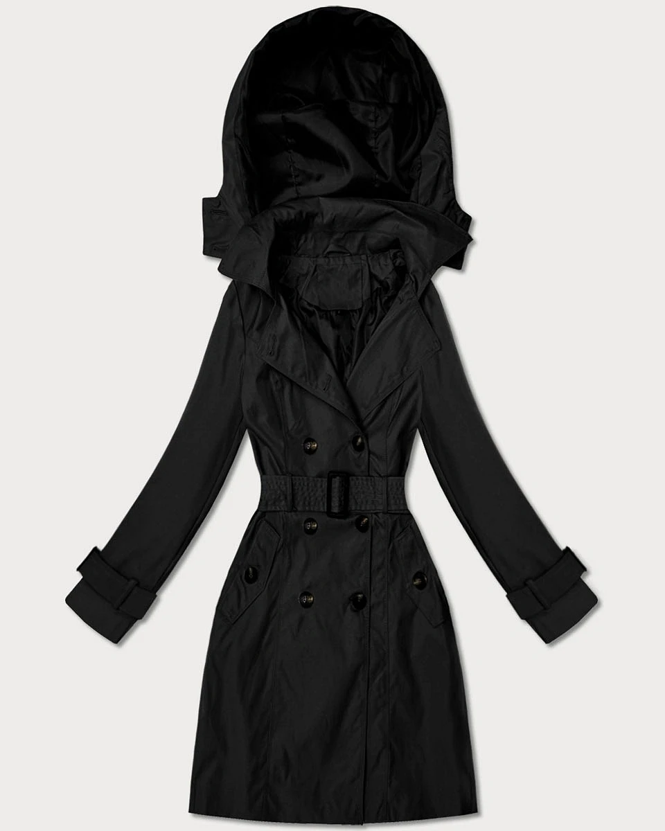 Elegantní dámský kabát s kapucí Goodlookin černý (T2-2238#-1)