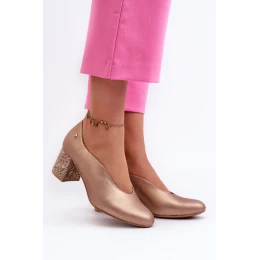 Elegantní kožené lodičky na podpatku Maciejka 06422-25 zlaté