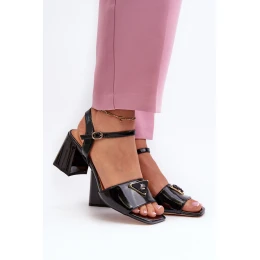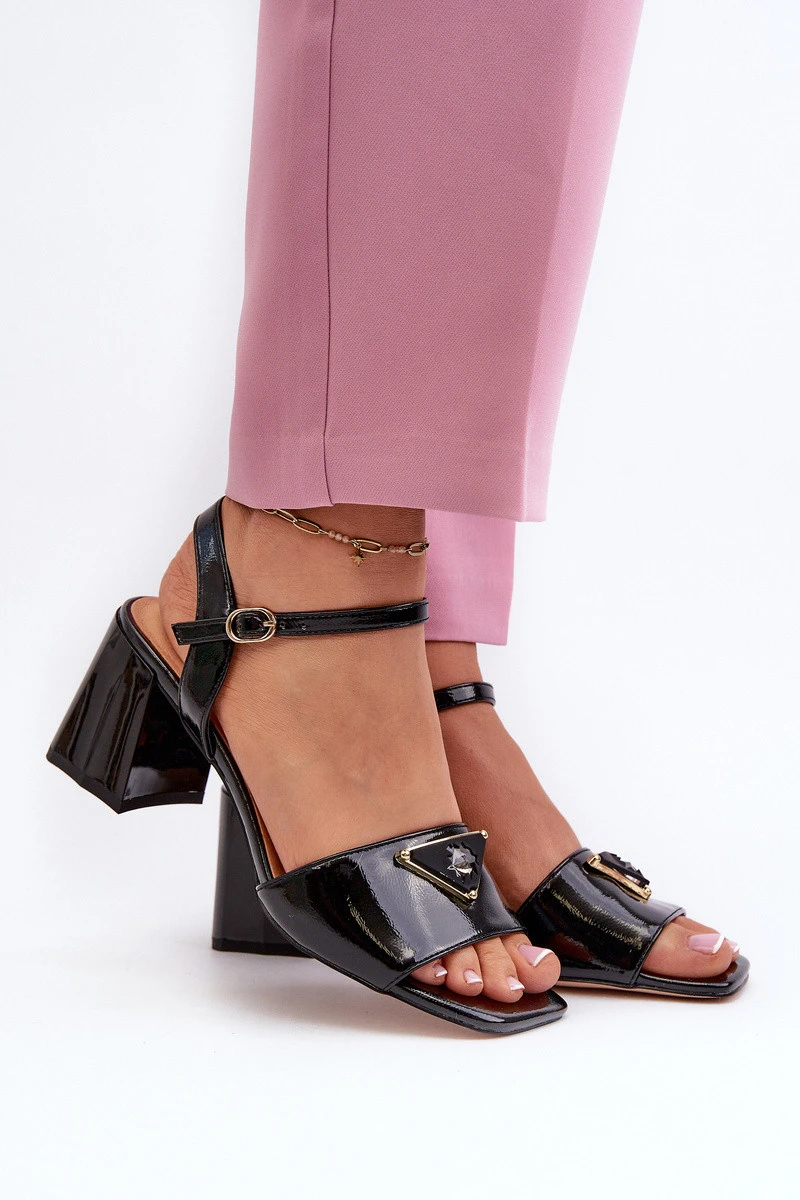Elegantní Lakované Sandály Na Podpatku Černé D&A MR38-660