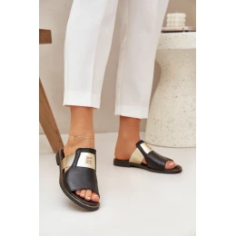 Elegantní Pantofle Z Přírodní Kůže Na Plochém Podpatku Zazoo 40423 Černé