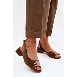 Elegantní sandály z přírodního semiše na podpatku D&A CE61-3127 Hnědé