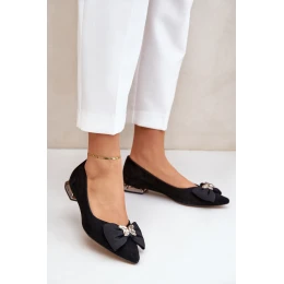 Elegantní Semišové Baleríny Dámské S Mašlí Laura Messi 2893 Černé