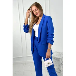 Představujeme vám elegantní sadu saka a kalhot. Bunda bez knoflíků s předními klopami. Bunda má podšívku. Kalhoty s kapsami a páskem. Pružný pásek všitý do pasu kalhot na zadní straně. Velmi módní a stylová sada. Sada je vyrobena z vysoce kvalitního materiálu. Velikost je univerzální a vyhovuje dámám velikosti S, M nebo L.