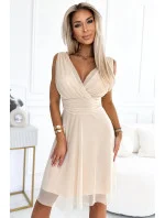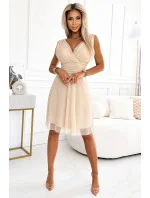 541-1 CELESTINA Elegantní tylové šaty s výstřihem a mašlí - BÍLÉ