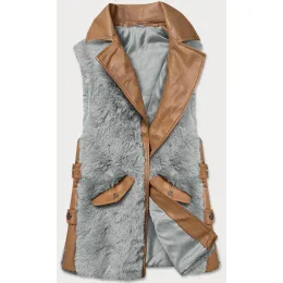 Elegantní vesta v karamelovo-šedé barvě z eko kůže a kožešiny (BR9592-9022)