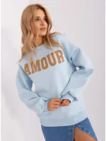 Světle modrá zateplená mikina s kapucí .