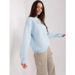 Světle modrá mikina s kapucí a nápisem .