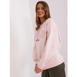 Světle růžová oversize mikina s nápisy.