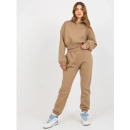 Tmavě béžová dámská tepláková souprava s krátkou mikinou .
