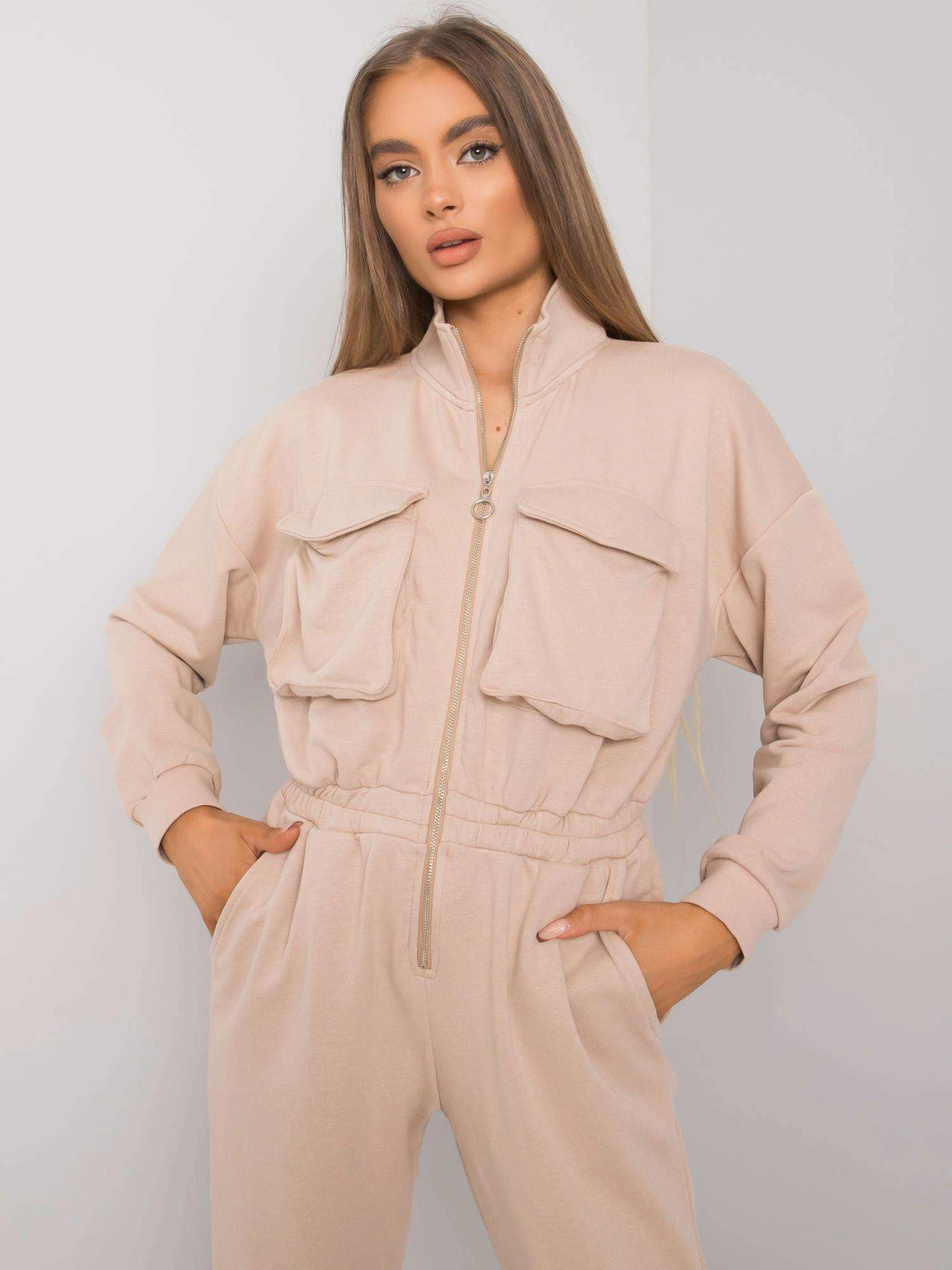 Béžový bavlněný overal.