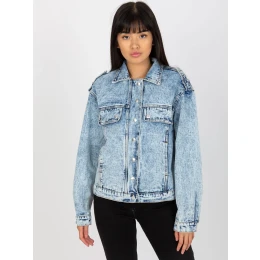 Modrá dámská džínová bunda se zapínáním na druky .