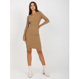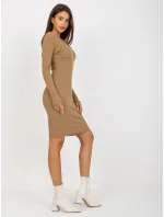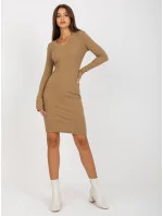 Velbloudí pruhované základní šaty s trojúhelníkovým výstřihem.
