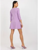 Světle fialové rozšířené mini základní šaty s kapsami .