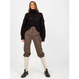 Černý volný svetr s rolákem a prolamovaným vzorem .