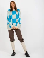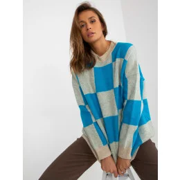 Modrobéžový dámský kostkovaný svetr oversize .