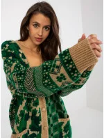 Rozměry svetru v jedné velikosti měřené na plocho: šířka v podpaží - 65 cm, délka rukávu - 65 cm, celková délka - 80 cm .
