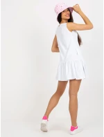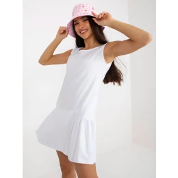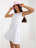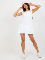Bílé základní mini šaty bez rukávů s volánkem .