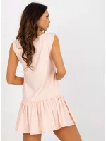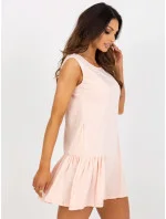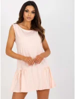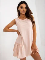 Bílé základní mini šaty bez rukávů s volánkem .