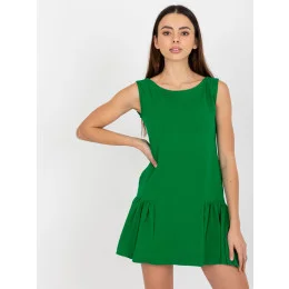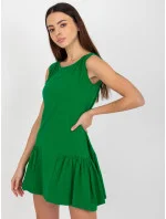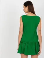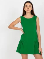 Zelené mini rozšířené základní šaty s volánem .