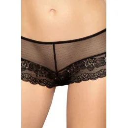 Erotické kalhotky Ellba ROZA - černá barva - přední část z průhledného tylu - zadní část z krajkové aplikace
