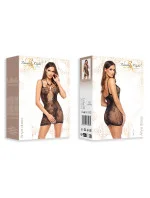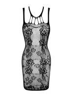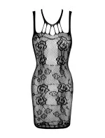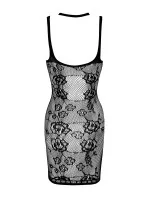 Dámské erotické šaty Anya dress red BEAUTY NIGHT FASHION - černá barva - tenká ramínka - ze síťoviny s malými oky - zdobené velkými květy