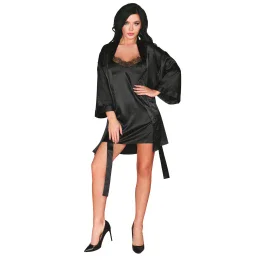 Dámský župan Dorettela LivCo - z černého saténu příjemné na dotek - volnějšího střihu - tříčtvrteční rukávy zakončené lemem - zavazovaní na saténový pásek