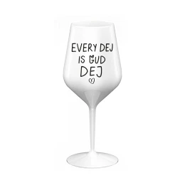 EVERY DEJ IS GUD DEJ - bílá nerozbitná sklenice na víno 470 ml