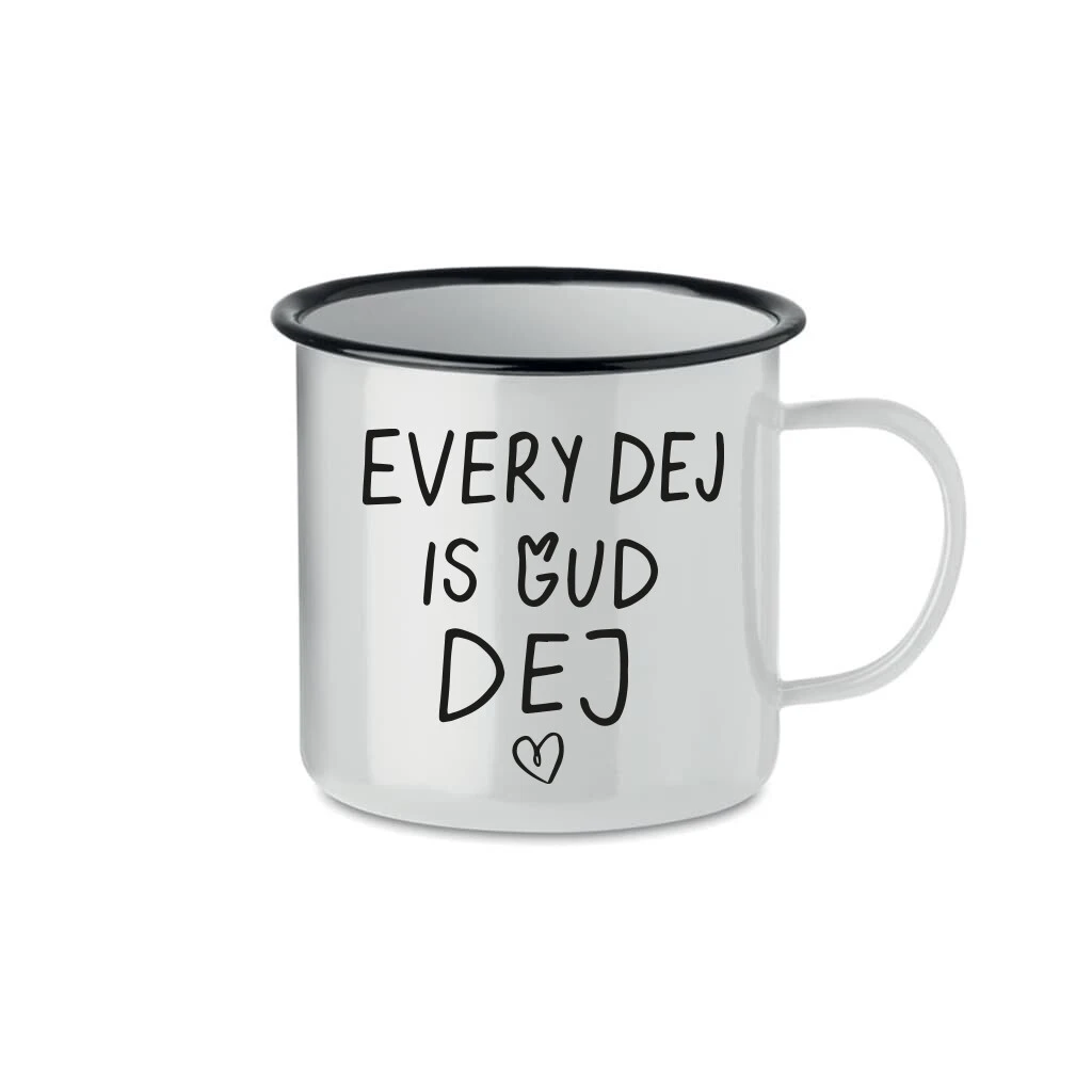 Naše nová kolekce smaltovaných plecháčků je jako stvořená právě pro tyto momenty. Každý plecháček je vyroben s láskou a pečlivostí, aby doprovázel vaše chvíle odpočinku, ať už si vychutnáváte šálek voňavé kávy, lahodného čaje nebo teplého kakaa. S objemem 350 ml jsou tyto tradiční smaltované hrnky perfektními společníky pro každý den. A co je na nich nejlepší? Každý z nich nese motiv: EVERY DEJ IS GUD DEJ, který rozjasní váš den a přinese úsměv na tvář. Tyto hrnky jsou jako malé pohlazení pro duši - ideální pro chvíle, kdy jste sami sebou, nebo pro ty nezapomenutelné okamžiky strávené s vašimi nejbližšími. Zapomeňte na chvíli na všechny starosti a užijte si klidný moment s naším smaltovaným plecháčkem. Objednejte si jej nyní a připravte se na maximální požitek z každého doušku! Doporučujeme ruční mytí tohoto produktu pro zachování jeho kvality a trvanlivosti. Nedoporučujeme umisťovat do myčky na nádobí.