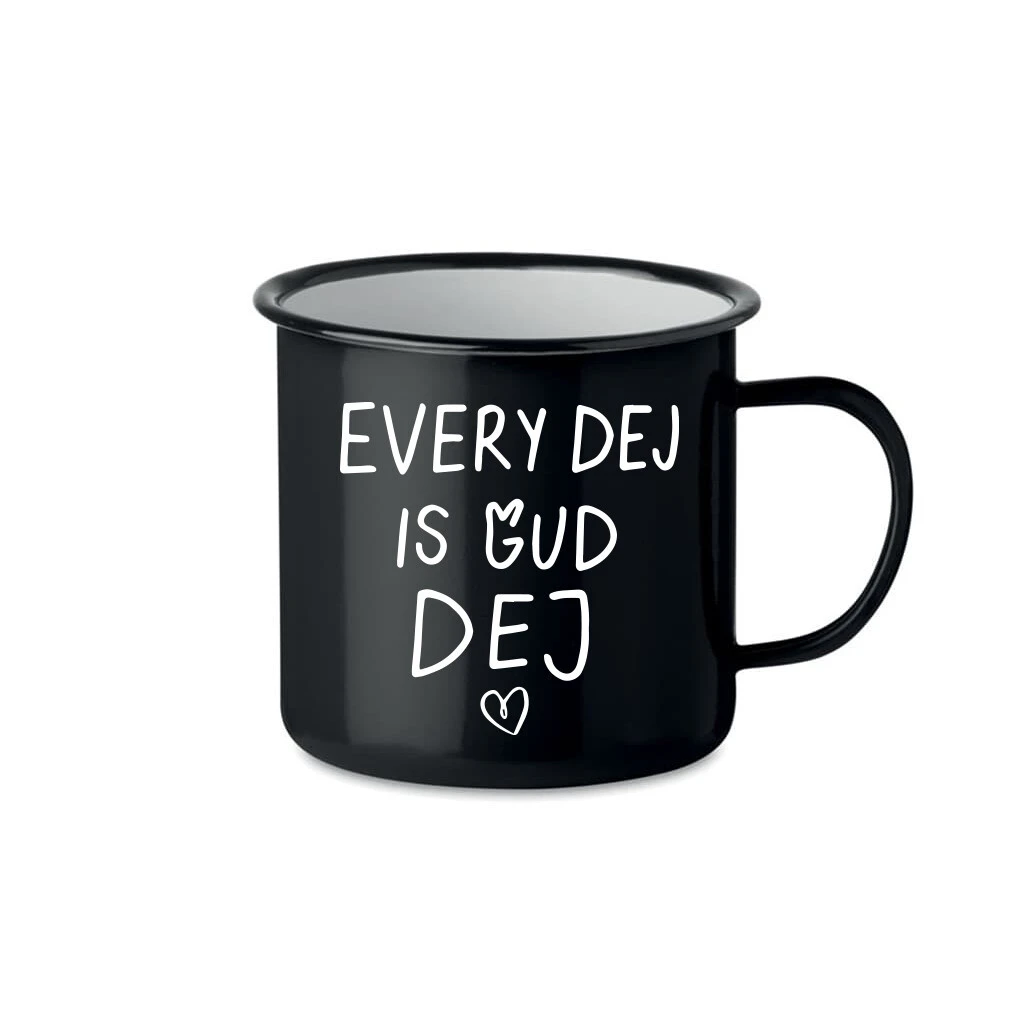 Naše nová kolekce smaltovaných plecháčků je jako stvořená právě pro tyto momenty. Každý plecháček je vyroben s láskou a pečlivostí, aby doprovázel vaše chvíle odpočinku, ať už si vychutnáváte šálek voňavé kávy, lahodného čaje nebo teplého kakaa. S objemem 350 ml jsou tyto tradiční smaltované hrnky perfektními společníky pro každý den. A co je na nich nejlepší? Každý z nich nese motiv: EVERY DEJ IS GUD DEJ, který rozjasní váš den a přinese úsměv na tvář. Tyto hrnky jsou jako malé pohlazení pro duši - ideální pro chvíle, kdy jste sami sebou, nebo pro ty nezapomenutelné okamžiky strávené s vašimi nejbližšími. Zapomeňte na chvíli na všechny starosti a užijte si klidný moment s naším smaltovaným plecháčkem. Objednejte si jej nyní a připravte se na maximální požitek z každého doušku! Doporučujeme ruční mytí tohoto produktu pro zachování jeho kvality a trvanlivosti. Nedoporučujeme umisťovat do myčky na nádobí.