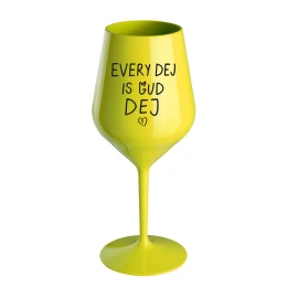 EVERY DEJ IS GUD DEJ - žlutá nerozbitná sklenice na víno 470 ml