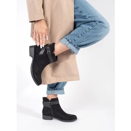 Exkluzívní černé dámské kotníčkové boty na širokém podpatku