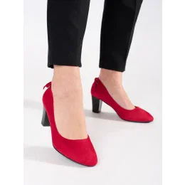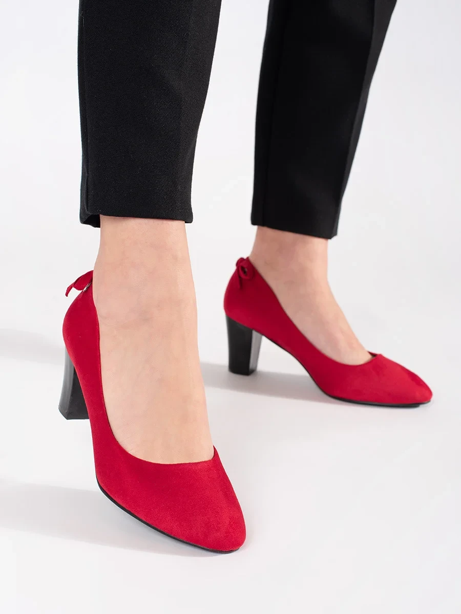 Exkluzívní dámské červené lodičky na širokém podpatku