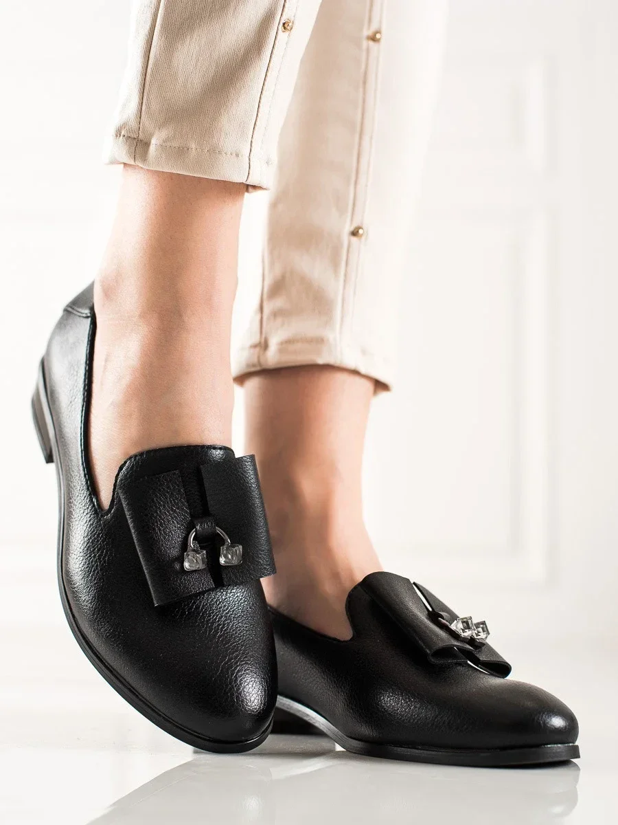 Exkluzívní dámské polobotky černé na plochém podpatku