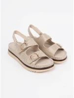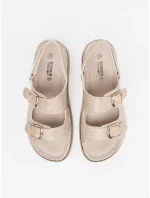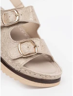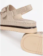 Stylové dámské sandály vyrobené z eko semiše. Usazeny na platformě a jemném klíně, které spojují eleganci s pohodlím. Zapínání na suchý zip vzadu zajišťuje snadné oblékání a svlékání, zatímco nastavitelné pásky s přezkami vpředu umožňují dokonalé přizpůsobení noze. Měkká stélka zaručuje pohodlí po celý den. Tyto sandály budou skvělou volbou na teplé dny, skvěle se hodí k šatům, sukním nebo kalhotám. Při výběru velikosti se řiďte tabulkou velikostí.